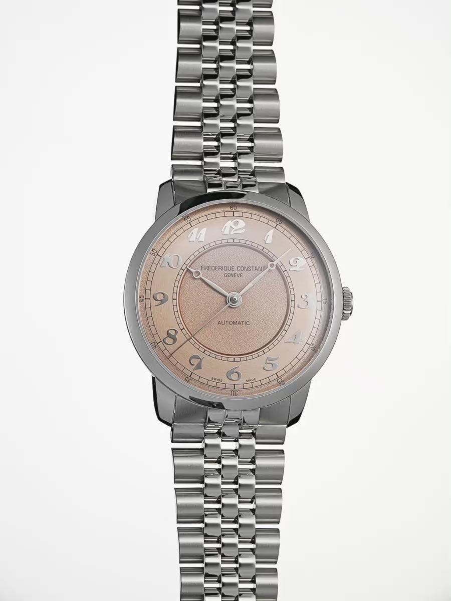 Die Classics Premiere von Frederique Constant in Lachsrosa ist weit mehr als nur eine Uhr: Sie ist eine lebhafte Hommage an die ästhetischen Codes der 50er- und 60er-Jahre, reinterpretiert mit zeitgemäßen Materialien und hochqualitativer Verarbeitung.